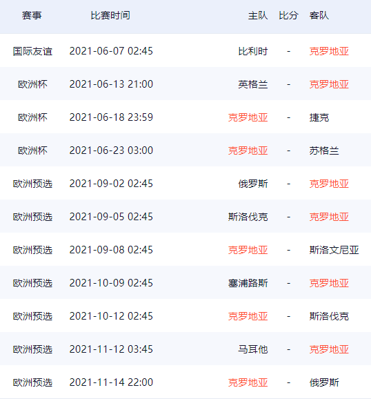 克罗地亚队欧洲杯26人球员大名单及赛程一览