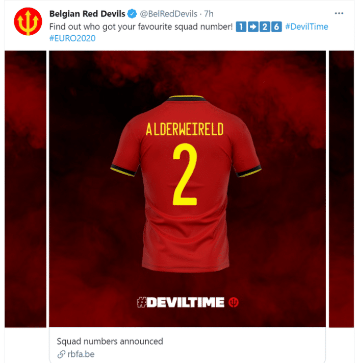 比利时号码: 丁丁7号, 卢卡库9号, 阿扎尔10号