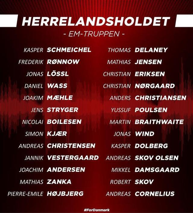 来源:24直播网05-26 10:5524直播网讯 今天,丹麦足协公布了今夏欧洲杯的26人大名单。