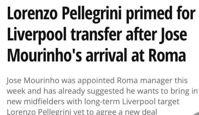 北京时间5月6日,来自英国知名媒体《每日镜报》的消息,穆里尼奥上任罗马主帅后,可能会推动红狼中场佩莱格里尼转会,而这位24岁罗马中场的下一站将会是英超豪门利物浦。