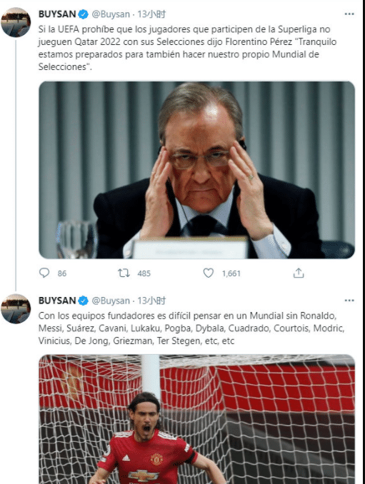 随后老佛爷被问起来自国际足联和欧足联的威胁,佛罗伦迪诺表示:“球员参加不了国家队比赛?这不会发生,这是他们的障眼法,我确定,他们不会把皇马和曼城踢出欧冠,因为有法律保护我们。”随后老佛爷还表示“不能参加世界杯?我们也可以组织。”不得不说,老佛爷这话真的有点狂了,他们组织世界杯,谁会去参加?毕竟他们掌控不了各国足协。