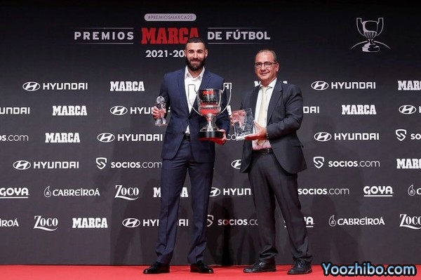 皮奇奇奖由《马卡报》颁发,表彰每个赛季的西甲最佳射手,迪斯蒂法诺奖则颁给每个赛季的西甲最佳球员。本泽马上赛季在西甲中为皇马出战32场,贡献27球12助。