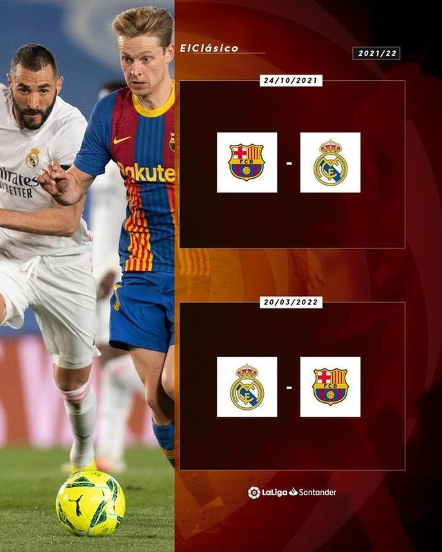 西甲今天公布了新赛季赛程,并确定了万众瞩目的国家德比日期,首回合将于2021年10月24日进行,巴萨坐镇诺坎普迎战皇马。
