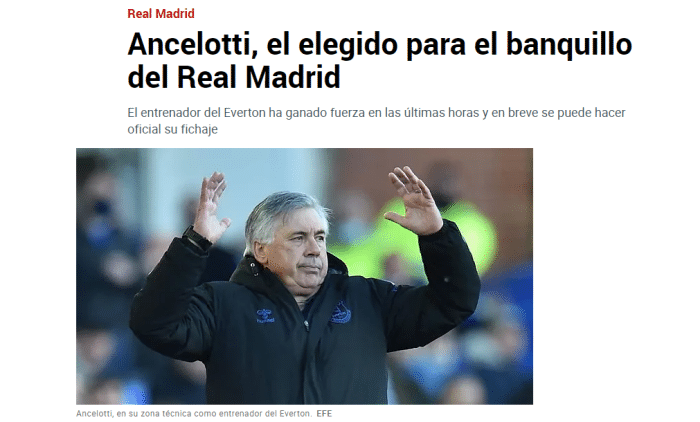 马上官宣! 马卡报: 安切洛蒂将签约执教皇马