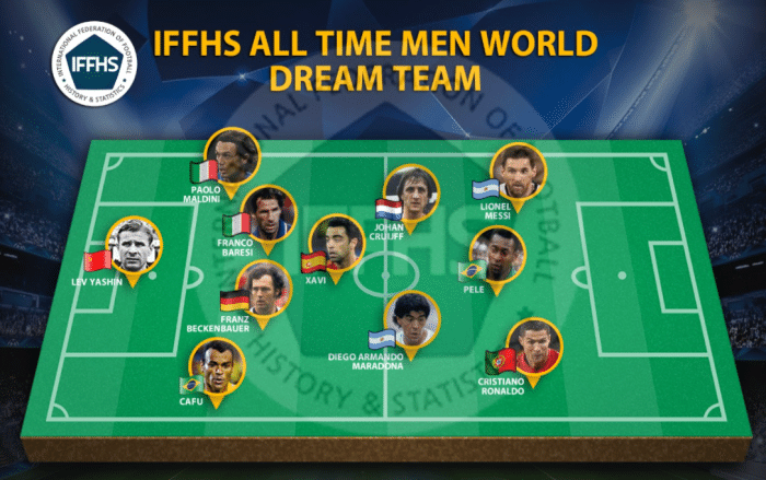 IFFHS评足坛历史梦之队: 贝利+梅罗三叉戟