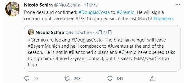 24直播网讯 5月15日记者尼科洛-斯基拉消息,格雷米奥已经完成了道格拉斯-科斯塔的转会。