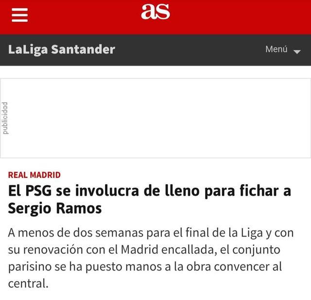 24直播网讯5月14日据西班牙《阿斯报》报道,在本赛季西甲还剩两轮,拉莫斯与皇马的合同还剩一个半月的情况下,他下赛季的去向几周内将会有结果,应该只有与皇马续约、加盟巴黎圣日耳曼两种可能。