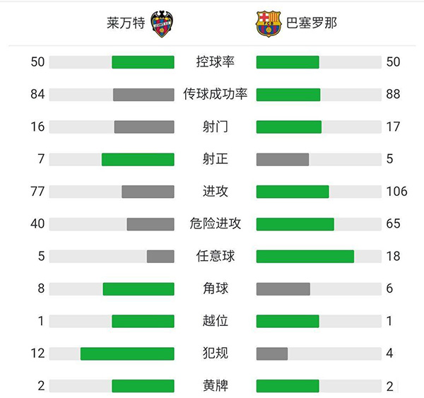 第57分钟,米拉蒙右路高质量传中,梅雷诺头球攻门将球顶进,莱万特1-2巴塞罗那。