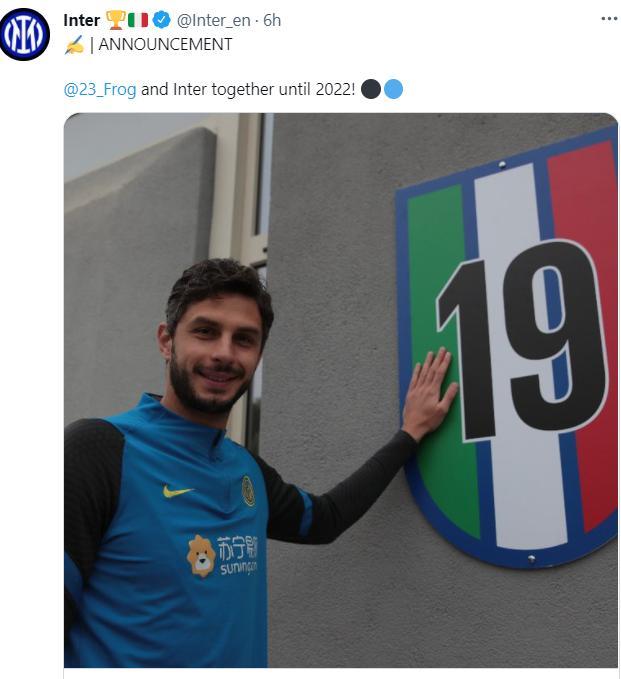 两人的合同都将在本月底到期,现在国米已经官宣与他们续约至2022年。