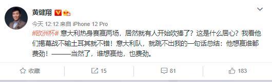 24直播网讯北京时间6月6日,欧洲杯即将开战,黄健翔在社交媒体意大利国家队发表了自己的看法。