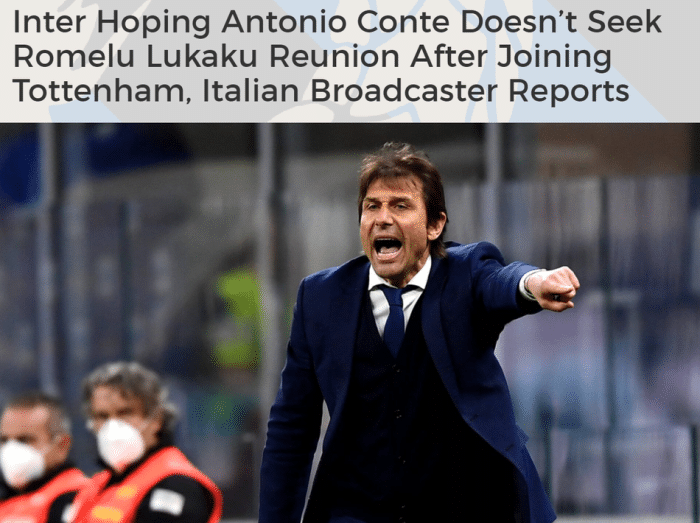 卢卡库与孔蒂关系密切,考虑到凯恩今夏可能离开热刺,获得转会费后的白百合可能会砸钱为孔蒂签下卢卡库,而这是国米不希望看到的。