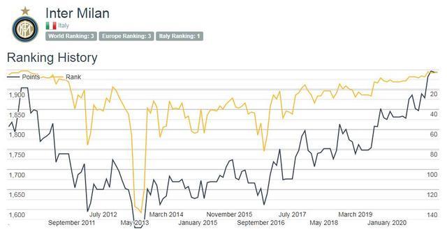 国米5年世界排名猛升42位,力压多豪门位居前三