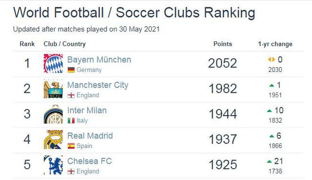 来源:24直播网06-02 11:2024直播网讯 在五月过去后,著名数据网站Football Database又一次更新了最新的世界俱乐部排名,国际米兰上升一位,来到了世界第三位,仅次于拜仁与曼城,并力压意大利的其他球队,高居本国第一。