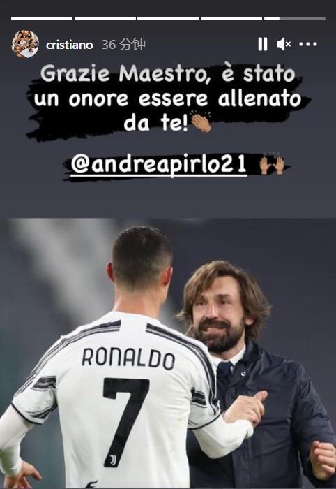 24直播网讯 北京时间5月28日,尤文官方宣布皮尔洛不再担任球队主帅。尤文球员C罗在个人社交媒体上告别皮尔洛。