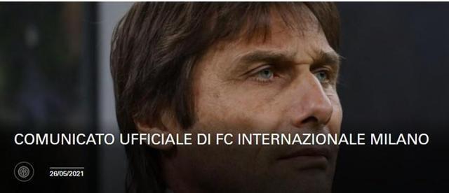 国际米兰俱乐部在此宣布,与安东尼奥-孔蒂协商一致解约,俱乐部上下感谢孔蒂出色的工作并为我们赢下了第19座意甲冠军,他将永远是俱乐部历史的一部分。