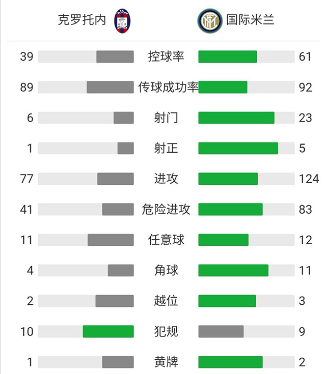第69分钟,国米取得领先,卢卡库做球,刚刚替补登场的埃里克森远射破门,国米1-0克罗托内。