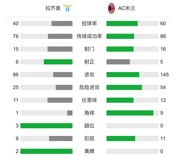 全场比赛结束,AC米兰0-3拉齐奥。