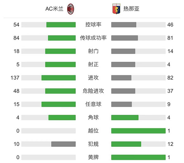 全场比赛结束,AC米兰主场2-1战胜热那亚。