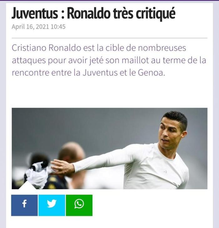 24直播网讯意甲第30轮尤文图斯主场战胜热那亚,C罗在赛后将球衣扔到了地上,引起了外界的争议和关注。事后尤文跟队记者罗密欧-阿格雷斯蒂表示。