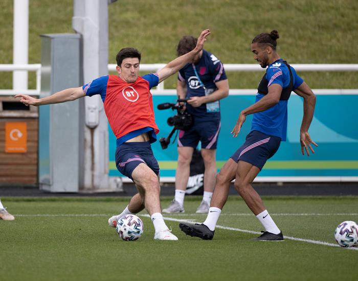 马奎尔正在从左脚脚踝韧带的伤病中恢复,周一他参加了英格兰队的正常训练,而且能够进行加速和变向等对脚踝要求很高的动作,还进行了对抗性练习。