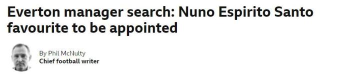24直播网讯据英国媒体BBC报道,前狼队主帅努诺-桑托最有可能成为埃弗顿新帅。