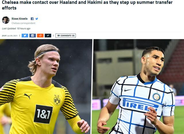 这位记者表示,切尔西已经联系了多特蒙德和国际米兰,寻求签下哈兰德和阿什拉夫,这两人是蓝军今夏的最主要目标。