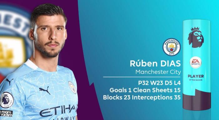 24直播网讯,英超联赛官方宣布,曼城中卫鲁本-迪亚斯当选英超赛季最佳球员。