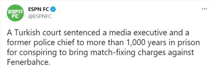 费内巴切假球案宣判,前警察局长被判超两千年监禁
