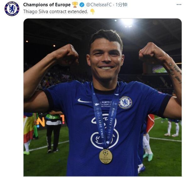 24直播网讯 官方消息,切尔西激活合同条款,与蒂亚戈-席尔瓦续约一年。