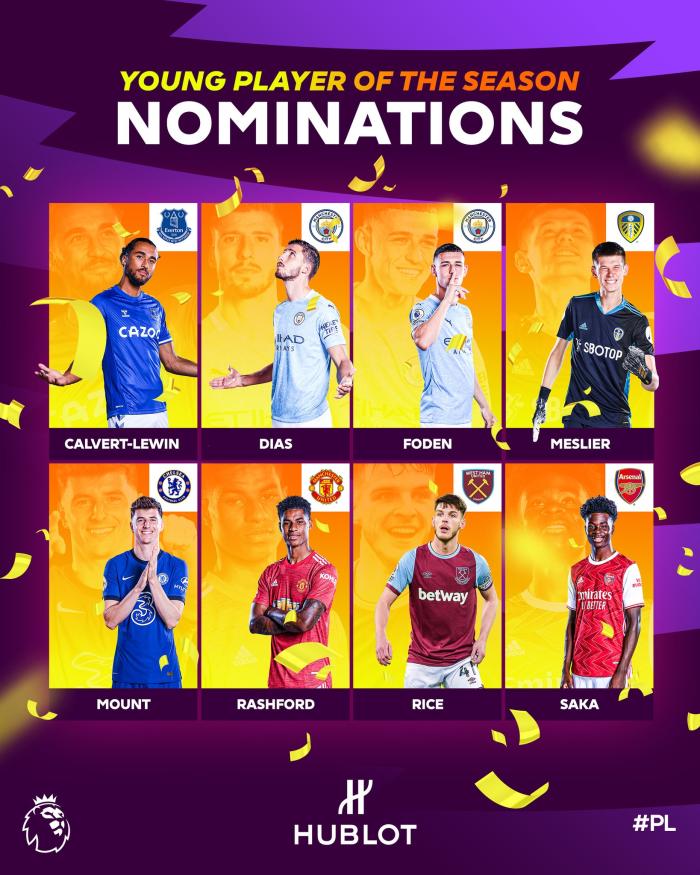 最后是英超最佳年轻球员名单,分别是埃弗顿的勒温、曼城的迪亚斯、曼城的福登、利兹联的梅利耶、切尔西的芒特、曼联的拉什福德、西汉姆的莱斯和阿森纳的萨卡。这个不多说了,个人感觉迪亚斯绝对是最佳,看看迪亚斯的表现就知道了,他提升了曼城后防线的水平,而其他球员的作用似乎都没有迪亚斯那么大。