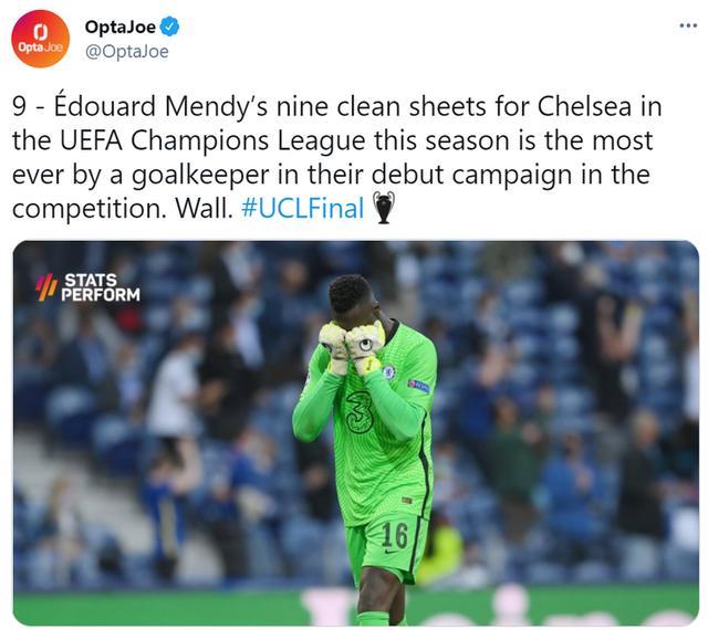 值得注意的是,这是29岁的门迪首次参加欧冠联赛,欧冠处子赛季9次零封也创造了全新纪录,此前从未有一位门将在参加欧冠的首个赛季能9次零封对手。