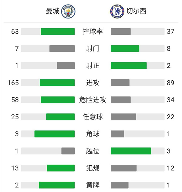 全场比赛结束,切尔西1-0战胜曼城夺得欧冠冠军。