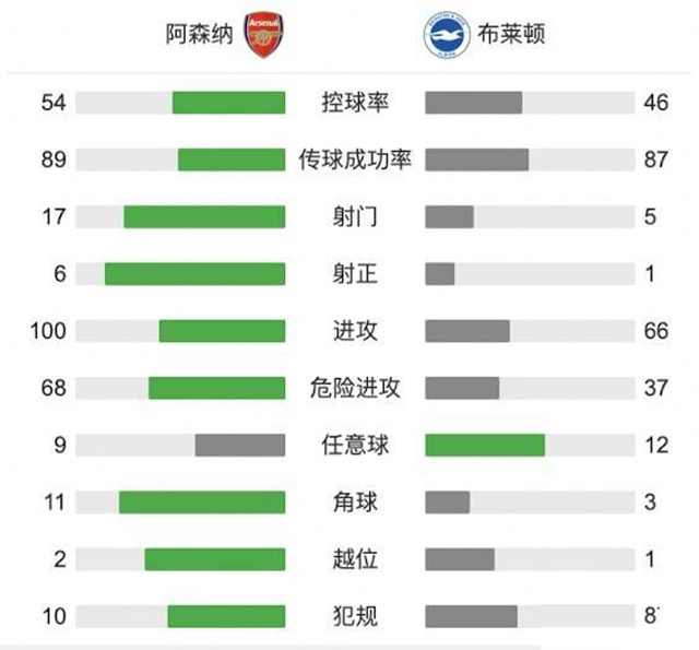 最终全场比赛结束,阿森纳2-0击败布莱顿最终斩获联赛第八收官。