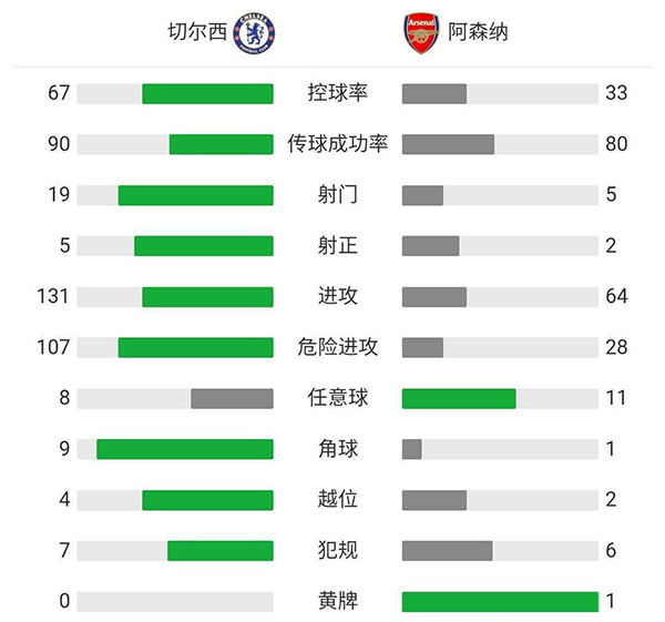 第16分钟,若日尼奥回传球险些乌龙,凯帕回到门线上奋力把球扑出,紧接着奥巴梅扬倒三角传中,史密斯罗跟上抽射破门,切尔西0-1阿森纳!