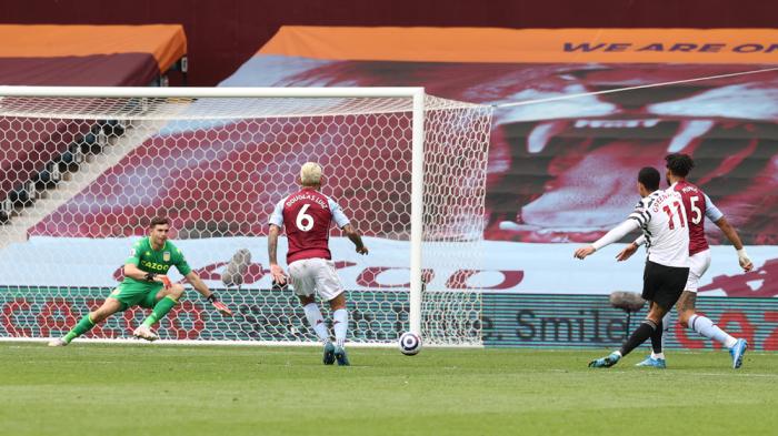 在周日下午的维拉公园,格林伍德转身过掉英格兰国脚泰隆·明斯,将球射入了右下角,让曼联反超比分。这是19岁的青木球王最近5场比赛中的第5个进球,过去10场比赛打入了7球,他在赛季末的关键和繁忙的赛程中,进入了最佳状态。