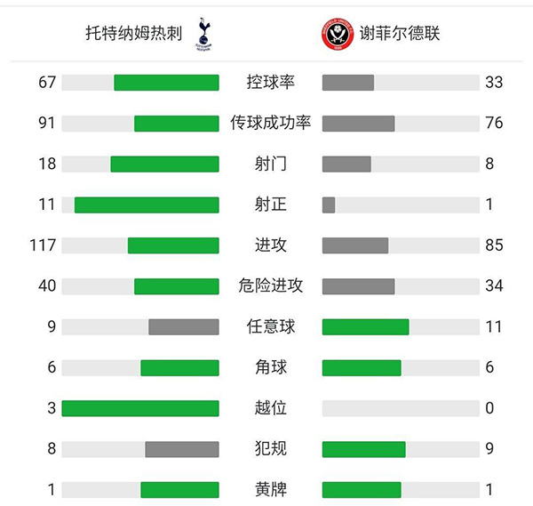 第69分钟,热刺再入一球,奥利耶内切后做球给贝尔,后者禁区前直接抽射破门,热刺3-0谢菲尔德联。