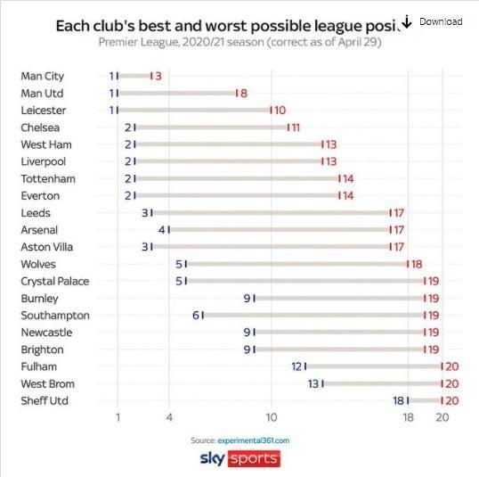 24直播网讯 今天, 天空体育对本赛季至今英超积分榜进行了数据分析,曼城、曼联、莱斯特均有争冠可能,阿森纳仍然保有跻身前四的希望。