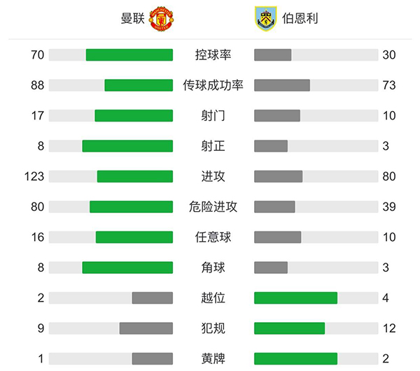 4分钟补时后全场比比赛结束,最终曼联3-1击败伯恩利。