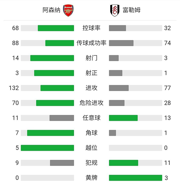 全场比赛结束,阿森纳1-1富勒姆,距离欧冠区有9分差距,富勒姆收获1分的同时,多赛两场落后第17位的伯恩利6分,保级形势不容乐观。