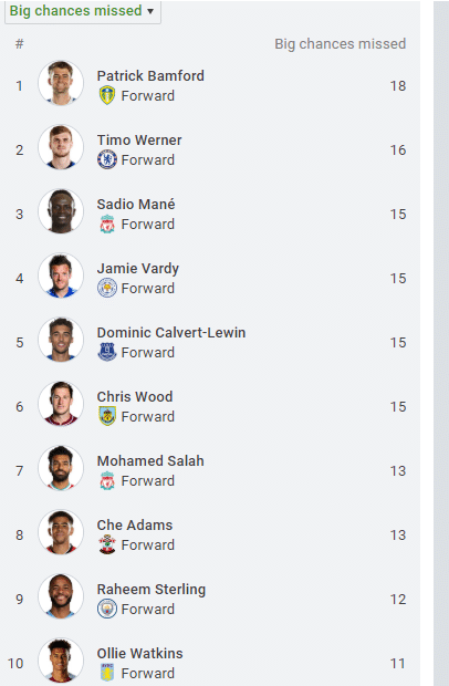 从表中可以看出,今年被很多人调侃的维尔纳,排名第二,巧合的是,位居榜首的学霸班福德也曾是