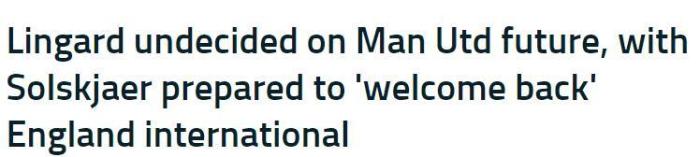 Goal还称,林加德方面表示,如果西汉姆联想要留下球员,那么他们反对球队用林加德来作为任何潜在交易的筹码。