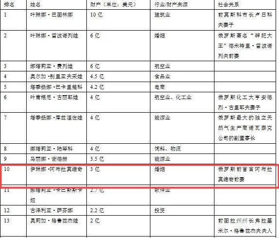 离婚13年,如今的伊琳娜现状如何呢?伊琳娜不是一个很好的投资家,但也不是个败家子,拿到这些钱后,伊琳娜做了最稳定的投资,如今的伊琳娜以身价3亿位居俄罗斯女富豪排行榜第三位。