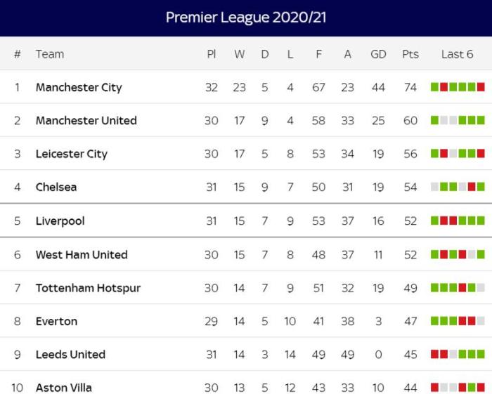 其实,曼城余下比赛只要3胜1平,同样足以冲线捧杯,因为蓝月亮有19个净胜球优势,英超同分首先看净胜球,曼联不大可能在8场比赛内抹平差距。