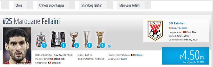 终老山东?德转:费莱尼与山东泰山续约至2025