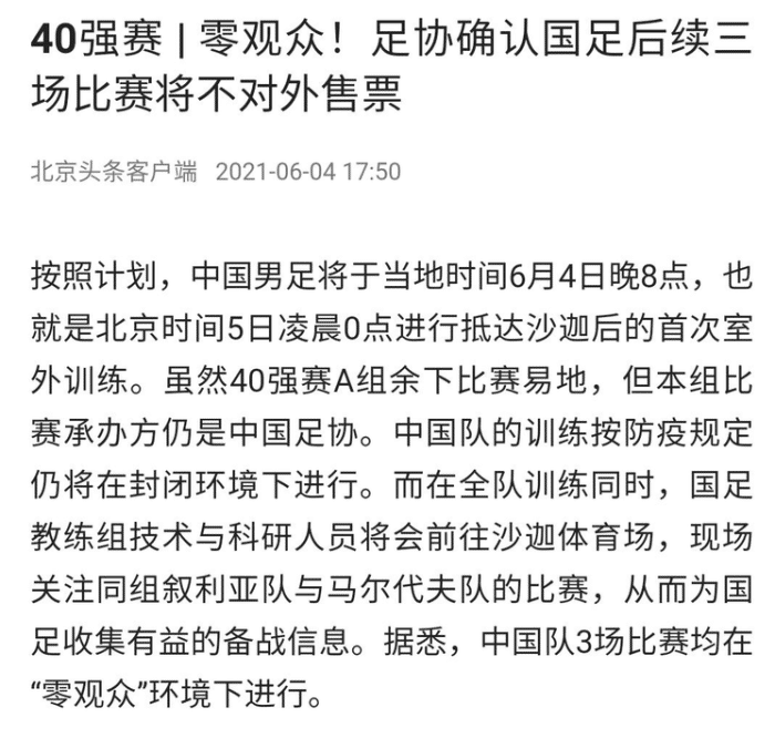 “为给国足备战创造安静的环境,同时避免给球队增压,与中国队同行的中国足协领导及参与国足备战保障工作的协会各部门负责人并不会前往国足训练场。而如果条件允许,他们也将同赴比赛场地观看其他对手的比赛。”