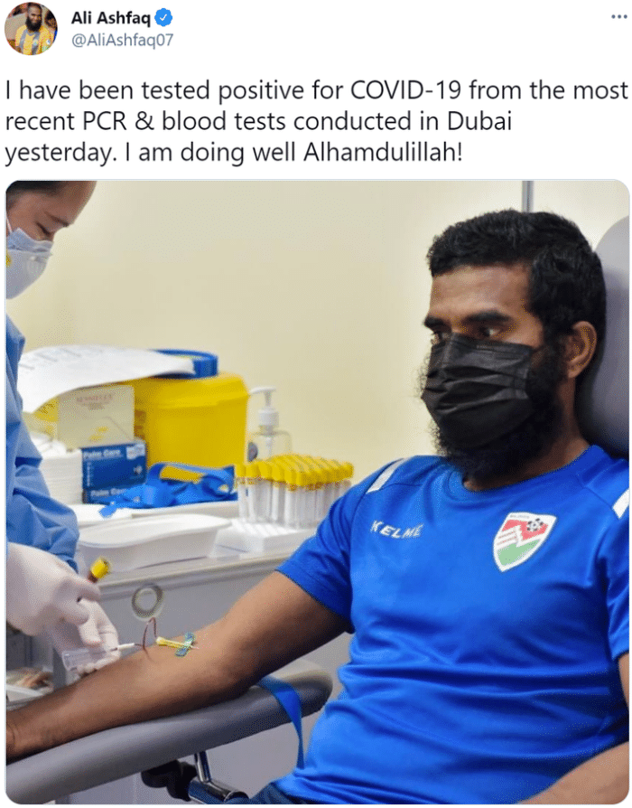 来源:24直播网05-30 15:0724直播网讯 马尔代夫传奇老将阿里-阿什法克日前在推特上证实自己感染新冠,将无缘参加对阵中国的40强赛。
