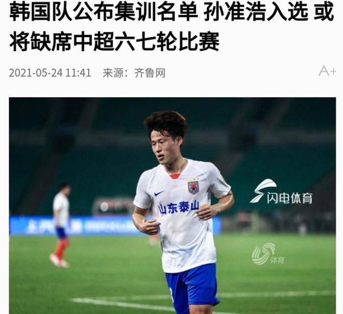鲁媒: 孙准浩入选国家队, 将错过中超第6、7两轮