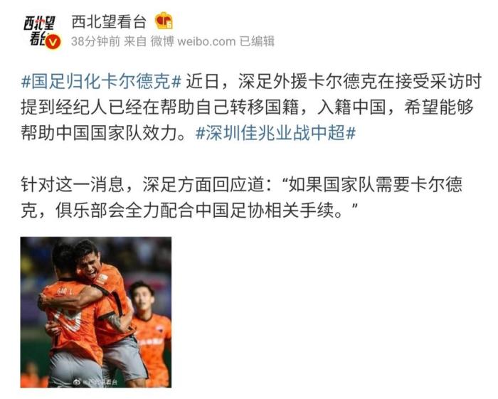而据“西北望看台”透露,关于卡尔德克的入籍,深圳队的回应是:“如果国家队需要卡尔德克,俱乐部会全力配合中国足协相关手续。”