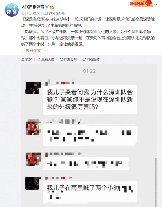 来源:24直播网05-08 16:0324直播网讯 我儿子不喜欢输!这是一个深足球迷在球迷组织发的话。他的小朋友在天河体育中心全程观看了“广东德比”,冒着大雨支持了深足两个小时。小朋友哭着向父亲发问:为什么深圳队会输,外援不是很厉害吗?对此,深足在参加第二场“广东德比”与广州城队的比赛,发布了“叔叔,赢球,一言为定”的海报。然而,现实总是残酷的,深圳市足球队发一张海报,就能改变球队的现状吗?