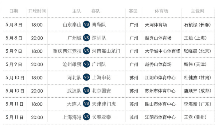 苏州赛区的比赛,李海新继续出场执法,他连续4轮联赛都是担任主裁判,本轮执法大连人和天津津门虎的比赛,大连人已经3连败,津门虎也是只拿到1分,这场比赛对两队非常重要。王竞执法亚泰和海港的比赛,唐顺齐执法武汉队和国安的对决,李霄鹏冲击首胜。河北队和申花的对决,主裁判是杜健鑫,这也是一个新面孔。